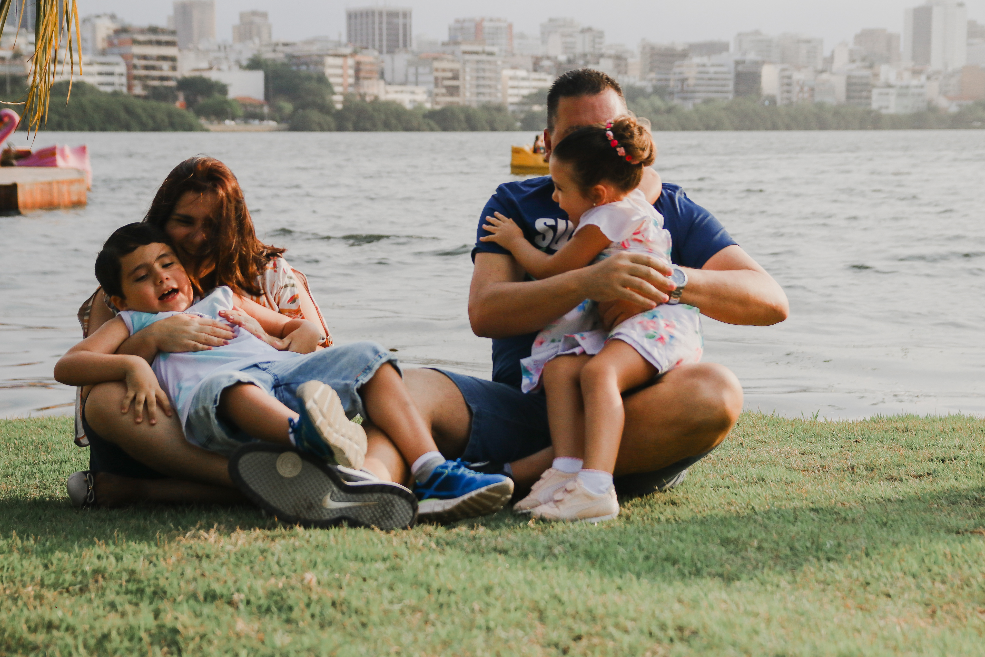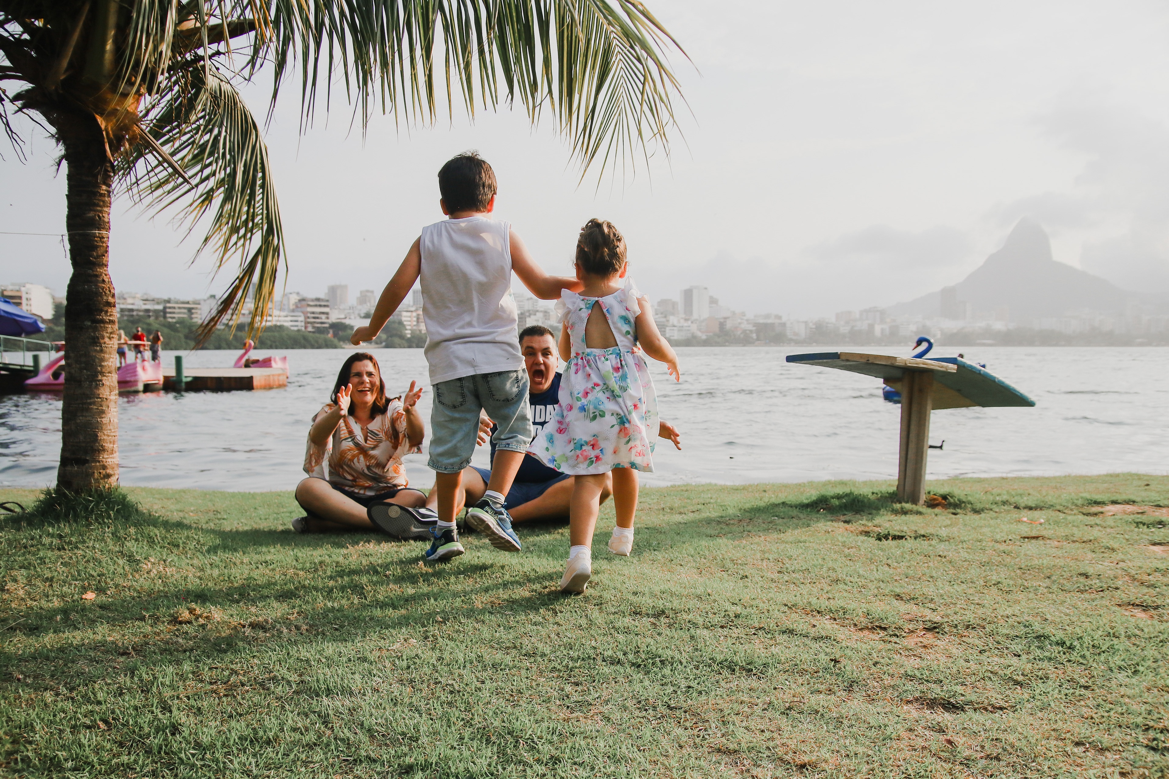 Momentos de muitas alegrias neste ensaio família no Lagoa Rodrigo de Freitas no Rio de Janeiro.