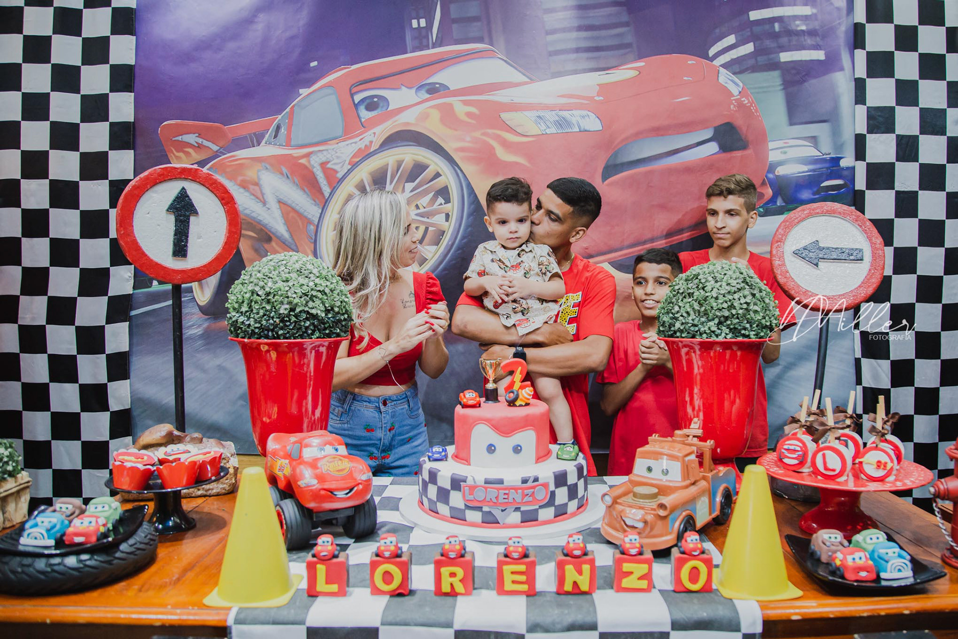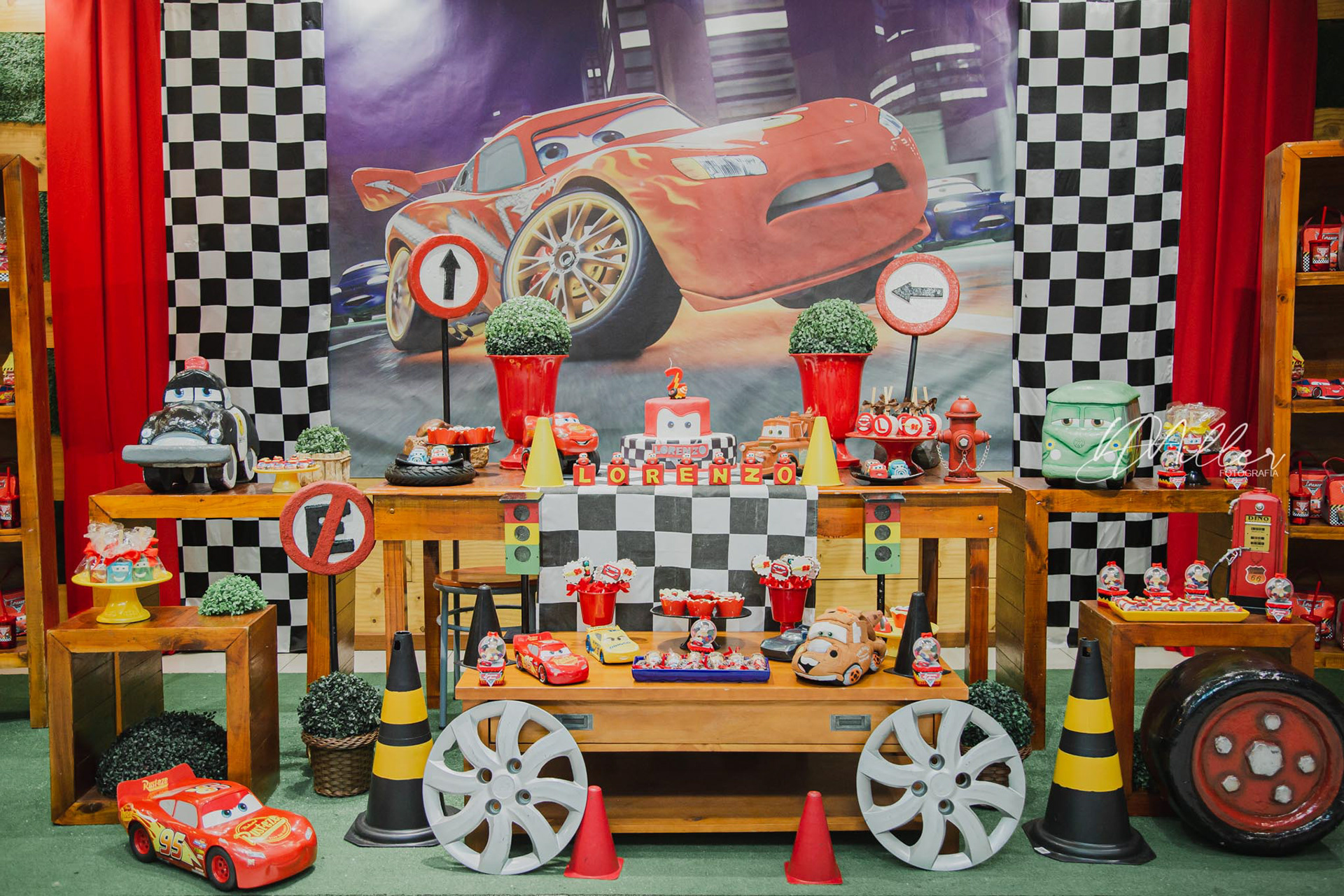 Com este tema querido da Disney, Lorenzo brincou muito na sua festa dos Carros. E os pais também!